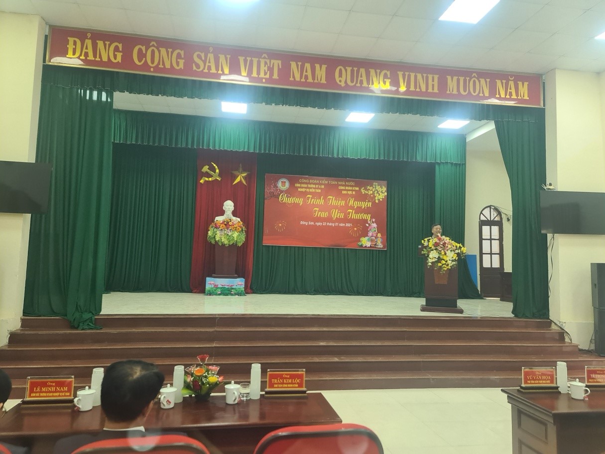 Tham dự chương trình thiện nguyện vào buổi sáng ngày 22/01/2021 tại Nghệ An có: TS. Vũ Văn Họa, Ủy viên Ban Cán sự Đảng, Phó Tổng KTNN, Ông Trần Kim Lộc, Ủy viên Ban Thường vụ Đảng ủy KTNN, Vụ Trưởng Vụ Hợp tác quốc tế, Chủ tịch Công đoàn KTNN, Ông Lê Minh Nam, Giám đốc Trường, Ông Phan Văn Thường - Kiểm toán trưởng KTNN Khu vực II cùng đại diện công đoàn viên của Trường Đào tạo và Bồi dưỡng nghiệp vụ kiểm toán, KTNN khu vực II và học viên Lớp Bồi dưỡng theo tiêu chuẩn chức danh lãnh đạo, quản lý cấp Phòng, Lớp Bồi dưỡng chuyên môn ngạch kiểm toán viên chính.