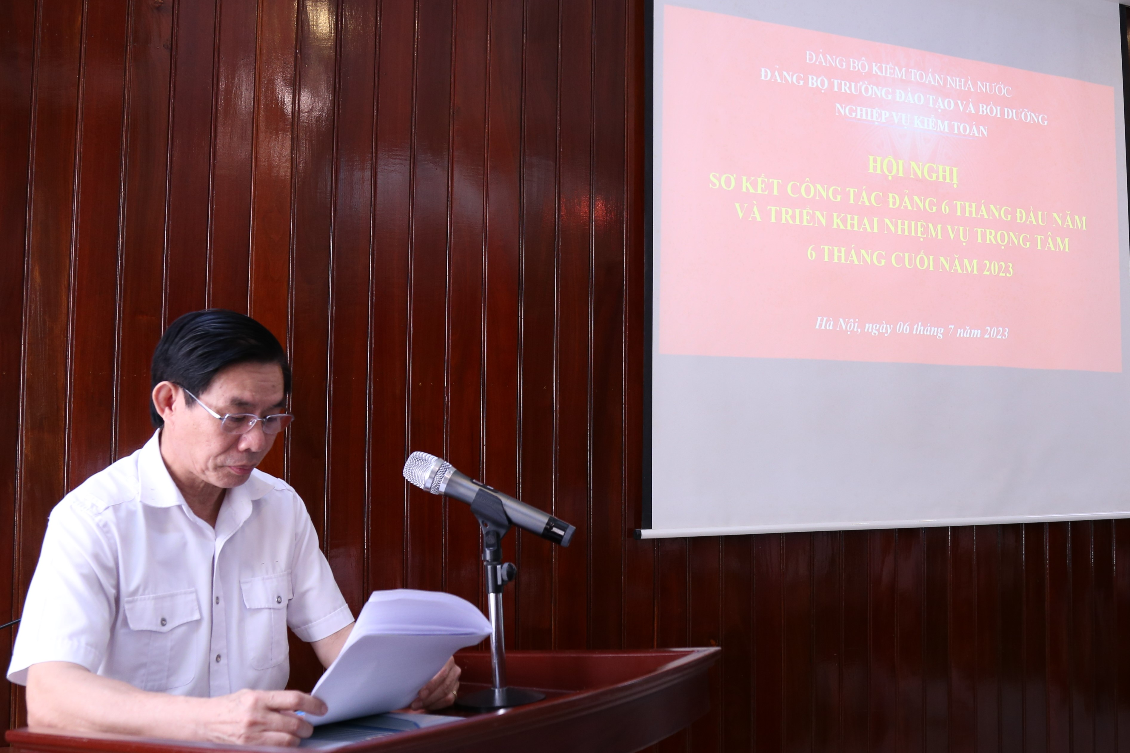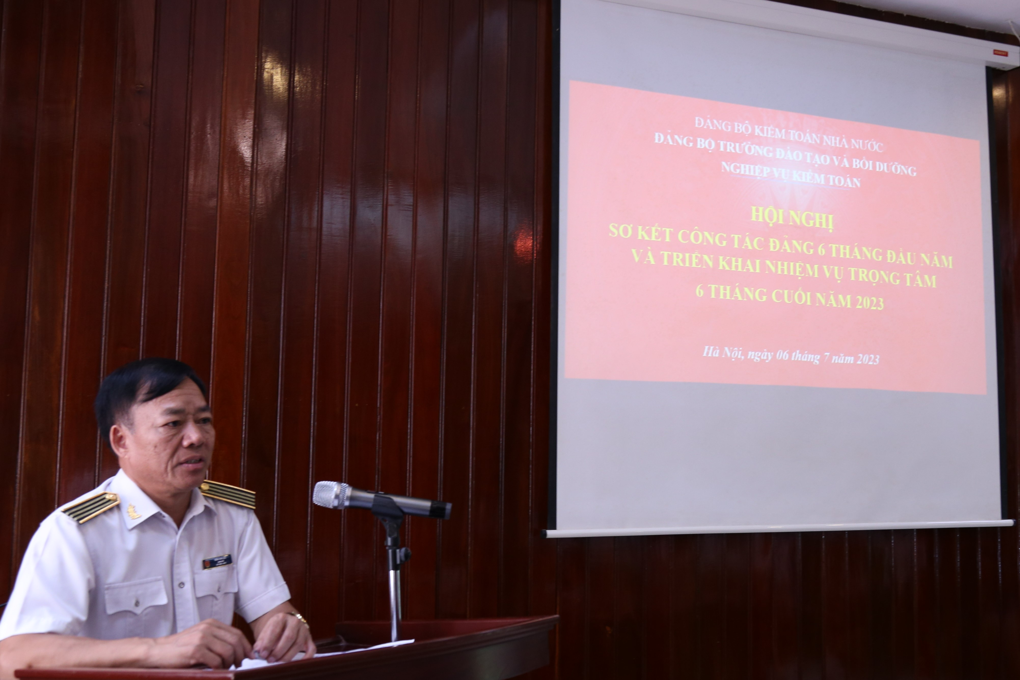 Phát biểu kết luận tại Hội nghị, Trần Kim Lộc - Bí thư Đảng bộ, Giám đốc trường ghi nhận những kết quả đã đạt được công tác Đảng của Trường 6 tháng đầu năm 2023, trong 6 tháng cuối năm đồng chí Bí thư Đảng bộ đề nghị các chi bộ trực thuộc, các đảng viên trong toàn bộ Đảng bộ Trường nỗ lực, đoàn kết bám sát các kế hoạch nhiệm vụ của Đảng bộ Trường 6 tháng cuối năm để hoàn thành tốt các nhiệm vụ được Ban Cán sự, Lãnh đạo KTNN giao phó.
