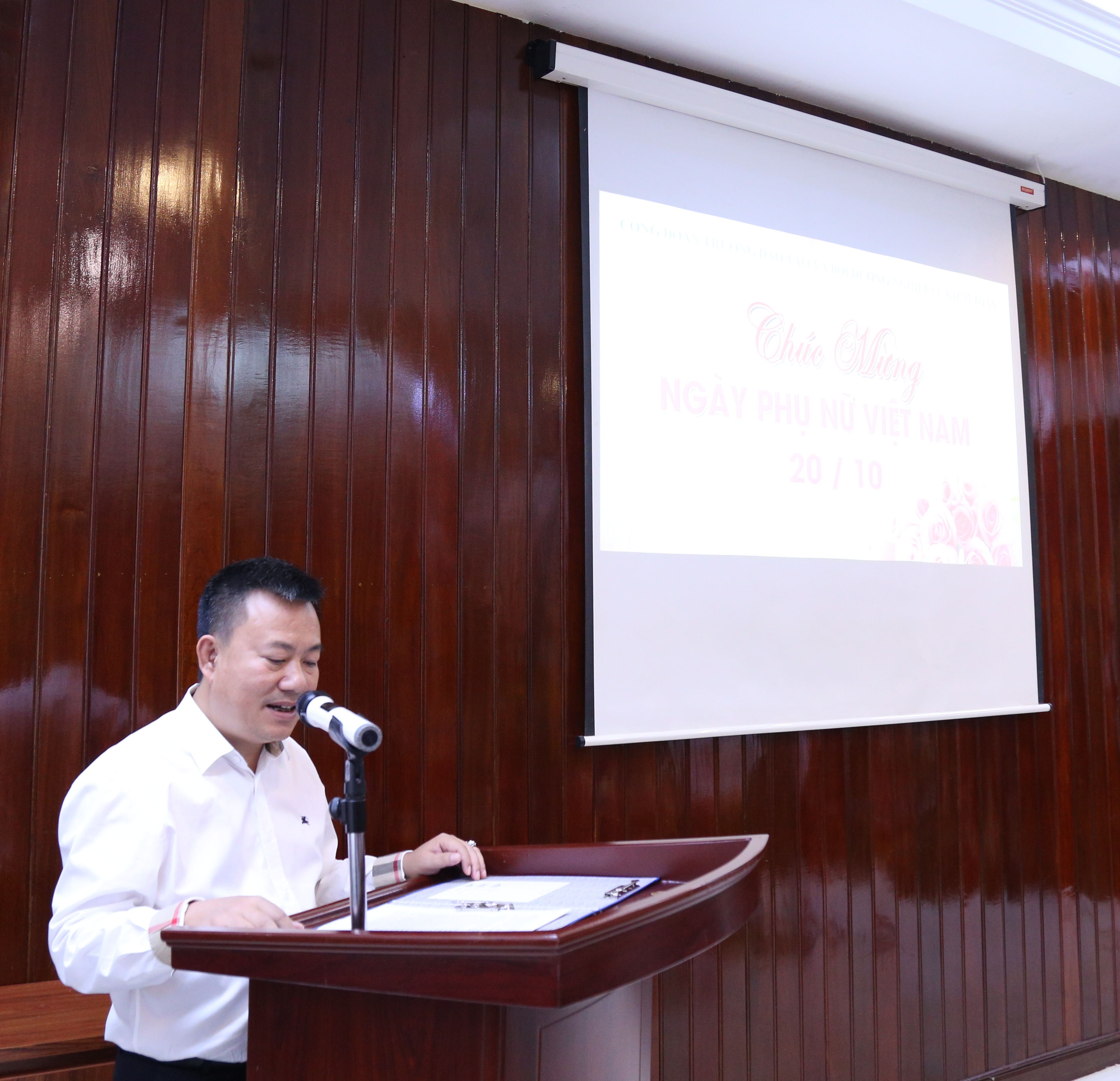 Phát biểu kết thúc buổi gặp mặt, ông Nguyễn Huy Hoàng - Chủ tịch Công đoàn, Phó Giám đốc Trường chân thành cảm ơn Lãnh đạo trường đã quan tâm và dành những tình cảm tốt đẹp cho chị em của Trường nhân ngày 20/10, đồng chí Chủ tịch Công đoàn gửi lời chúc mừng sức khỏe đến các đồng chí Lãnh đạo Trường, cùng toàn thể cán bộ viên chức của Trường và chúc các nữ viên chức của Trường luôn vui tươi, trẻ đẹp.