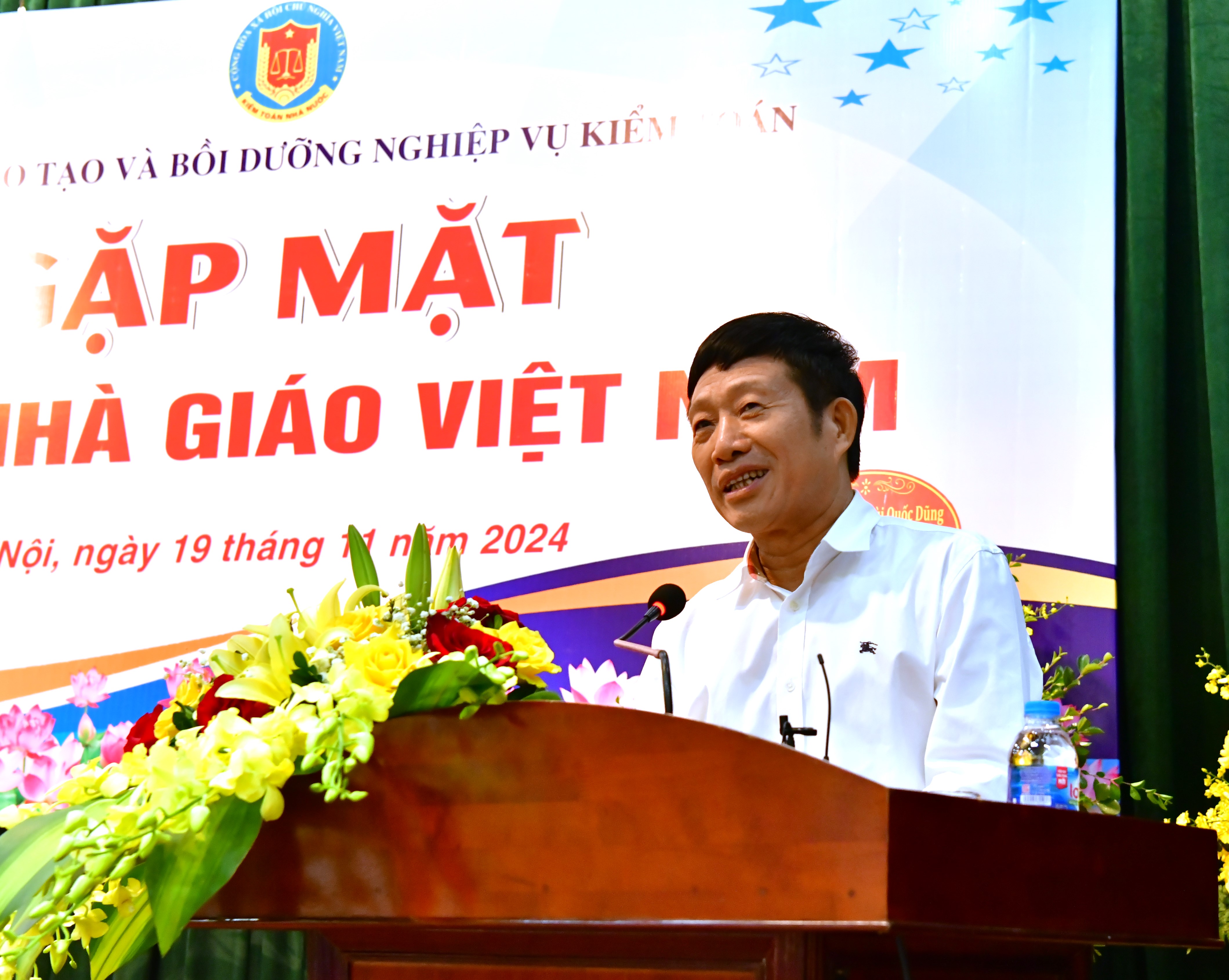 Sáng ngày 12/11, Trường Đào tạo và Bồi dưỡng Nghiệp vụ kiểm toán (Trường) tổ chức buổi Gặp mặt nhân ngày Nhà giáo Viêt Nam (20/11) nhằm tri ân các thầy, cô giáo có nhiều đóng góp cho hoạt động đào tạo ngoài Ngành. Tới dự buổi lễ có Phó Tổng Kiểm toán nhà nước Bùi Quốc Dũng, nguyên Phó Tổng Kiểm toán nhà nước Vũ Văn Họa, các đồng chí lãnh đạo và cán bộ chủ chốt của Trường; các đại biểu, các thầy, cô giáo trong và ngoài Ngành có nhiều cống hiến với hoạt động đào tạo của Trường. Phó Tổng Kiểm toán nhà nước Bùi Quốc Dũng phát biểu tại buổi Gặp mặt Báo cáo tại buổi gặp mặt, Phó Giám đốc Trường Nguyễn Huy Hoàng cho biết, từ năm 2021 đến nay, hoạt động đào tạo ngoài ngành tăng trưởng mạnh mẽ về quy mô, nội dung và chất lượng. Trong đó, năm 2025 là năm rực rỡ nhất, gặt hái nhiều thành công trong toàn bộ hành trình 15 năm hoạt động, với số lượng các khóa đào tạo tăng cao, nội dung chương trình cập nhật sâu sát thực tiễn, quan hệ hợp tác được mở rộng và bền vững. Những thành tựu này không chỉ là kết quả chuyên môn, mà còn là sự kết tinh trách nhiệm chính trị của Trường, sự đồng lòng của đội ngũ thầy cô và sự tin tưởng của các đơn vị đối tác.                                   Toàn cảnh buổi Gặp mặt Thông qua hoạt động đào tạo, Trường đang từng bước cùng các thầy, cô giáo, các chuyên gia và các đơn vị đối tác xây dựng một hệ sinh thái nghề nghiệp trong lĩnh vực quản lý tài chính, tài sản công quốc gia: Minh bạch - Tuân thủ - Trách nhiệm. Hệ sinh thái này góp phần quan trọng vào việc hoàn thiện quản trị công, nâng cao hiệu lực, hiệu quả sử dụng tài chính công  theo đúng yêu cầu mà Đảng, Nhà nước và xã hội giao phó cho ngành Kiểm toán nhà nước. Giám đốc Trường Vương Nguyên Lượng phát biểu tại buổi Gặp mặt Tại buổi Gặp mặt, các giảng viên đã đóng góp nhiều ý kiến quý báu để Trường tiếp tục phát huy và nâng cao chất lượng đào tạo trong thời gian tới, qua đó lan tỏa chuẩn mực kiểm toán công, chuyển giao kinh nghiệm thực tiễn từ các cuộc kiểm toán lớn, tạo sự đồng bộ trong quản lý tài chính công ở các cấp tới các đơn vị. Phát biểu tại buổi Gặp mặt, Phó Tổng Kiểm toán nhà nước Bùi Quốc Dũng ghi nhận những kết quả của Trường đã đạt được trong công tác đạo tạo ngoài ngành trong thời gian vừa qua. Nhân dịp này Phó Tổng Kiểm toán nhà nước đã chia sẻ tới các giảng viên ngoài Ngành một số hoạt động của Kiểm toán nhà nước, của Trường thời gian qua và định hướng phát triển trong thời gian tới. Phó Tổng Kiểm toán nhà nước mong rằng thời gian tới các thầy, cô giáo tiếp tục tham gia cộng tác để Trường nâng cao chất lượng đào tạo, giảng dạy. Đây cũng là nền tảng vững chắc để xây dựng cơ quan Kiểm toán nhà nước ngày càng chuyên nghiệp, hiện đại, nhân văn và liêm chính. Tại buổi Gặp mặt, Giám đốc Trường Vương Nguyên Lượng đã phát biểu và cảm ơn sự quan tâm của Lãnh đạo Ngành, của các thầy cô tới hoạt động đào tạo của Trường và mong rằng trong thời gian tới các thầy cô giáo tiếp tục quan tâm, giúp đỡ để Trường hoàn thành tốt các nhiệm vụ chính chị được lãnh đạo Ngành giao phó. Các thầy, cô giáo được trao tặng Giấy khen của Giám đốc Trường Nhân dịp này, Giám đốc Trường đã trao tặng Giấy khen tới các thầy, cô giáo có nhiều đóng góp cho hoạt động đào tạo ngoài ngành.