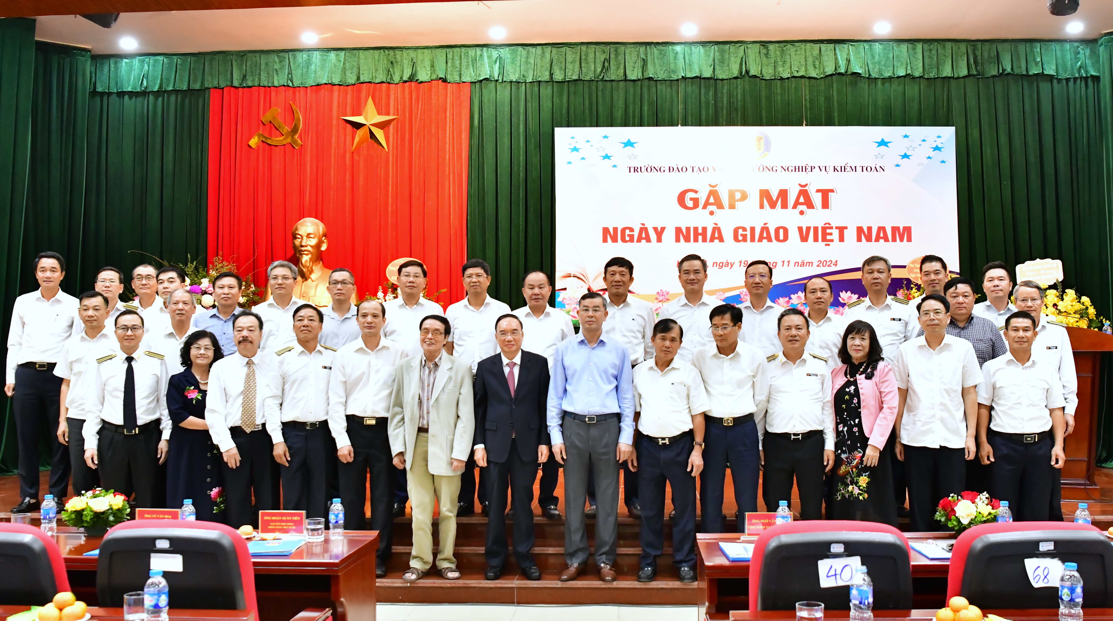 (khoahockiemtoan.vn) - Chiều 19/11, Trường Đào tạo và Bồi dưỡng nghiệp vụ kiểm toán tổ chức buổi gặp mặt nhân Ngày Nhà giáo Việt Nam. Tới dự buổi gặp mặt có Tổng Kiểm toán nhà nước Ngô Văn Tuấn, nguyên Phó Tổng Kiểm toán nhà nước Đoàn Xuân Tiên, Vũ Văn Họa; các đồng chí nguyên lãnh đạo Trường; lãnh đạo các đơn vị trực thuộc Kiểm toán nhà nước (KTNN); giảng viên kiêm chức; các thế hệ lãnh đạo, công chức, viên chức, người lao động của Trường Đào tạo và Bồi dưỡng nghiệp vụ kiểm toán.