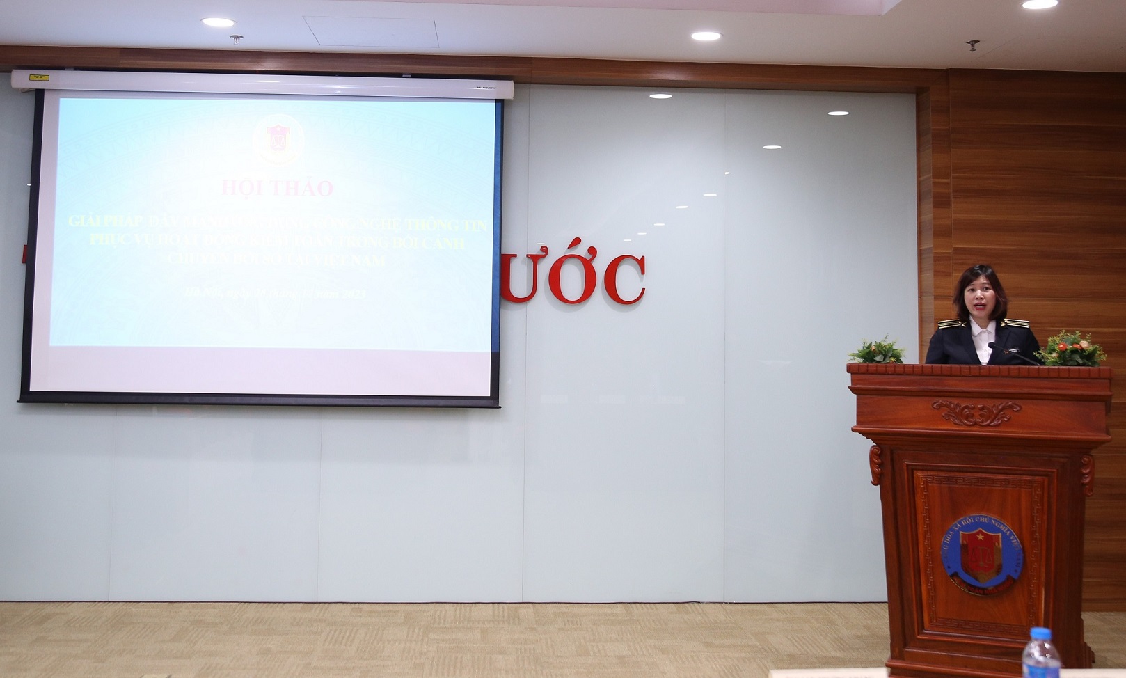 Bà Lăng Trịnh Mai Hương - Phó Vụ trưởng Vụ hợp tác quốc tế phát biểu bế mạc Hội thảo Phát biểu bế mạc Hội thảo, bà Lăng Trịnh Mai Hương - Phó Vụ trưởng Vụ hợp tác quốc tế khẳng định: Sau một buổi sáng làm việc nghiêm túc, Hội thảo “Giải pháp đẩy mạnh ứng dụng công nghệ thông tin phục vụ hoạt động kiểm toán trong bối cảnh chuyển đổi số tại Việt Nam” do KTNN tổ chức đã hoàn thành chương trình đề ra. Hội thảo nhận được 22 bài viết, nhiều ý kiến tham luận và thảo luận tâm huyết, sôi nổi của các đại biểu. Các ý kiến trao đổi, thảo luận tại Hội thảo sẽ được nghiên cứu, tiếp thu tối đa để KTNN có nhiều đổi mới, sáng tạo và khoa học, xây dựng các giải pháp hữu hiệu, đạt được nhiều thành tựu trong quá trình thực hiện nhiệm vụ chính trị được Đảng và Nhà nước giao phó, nhằm đáp ứng tốt hơn với những kỳ vọng, niềm tin và sự mong đợi của Đảng, Nhà nước, Quốc hội và Nhân dân.