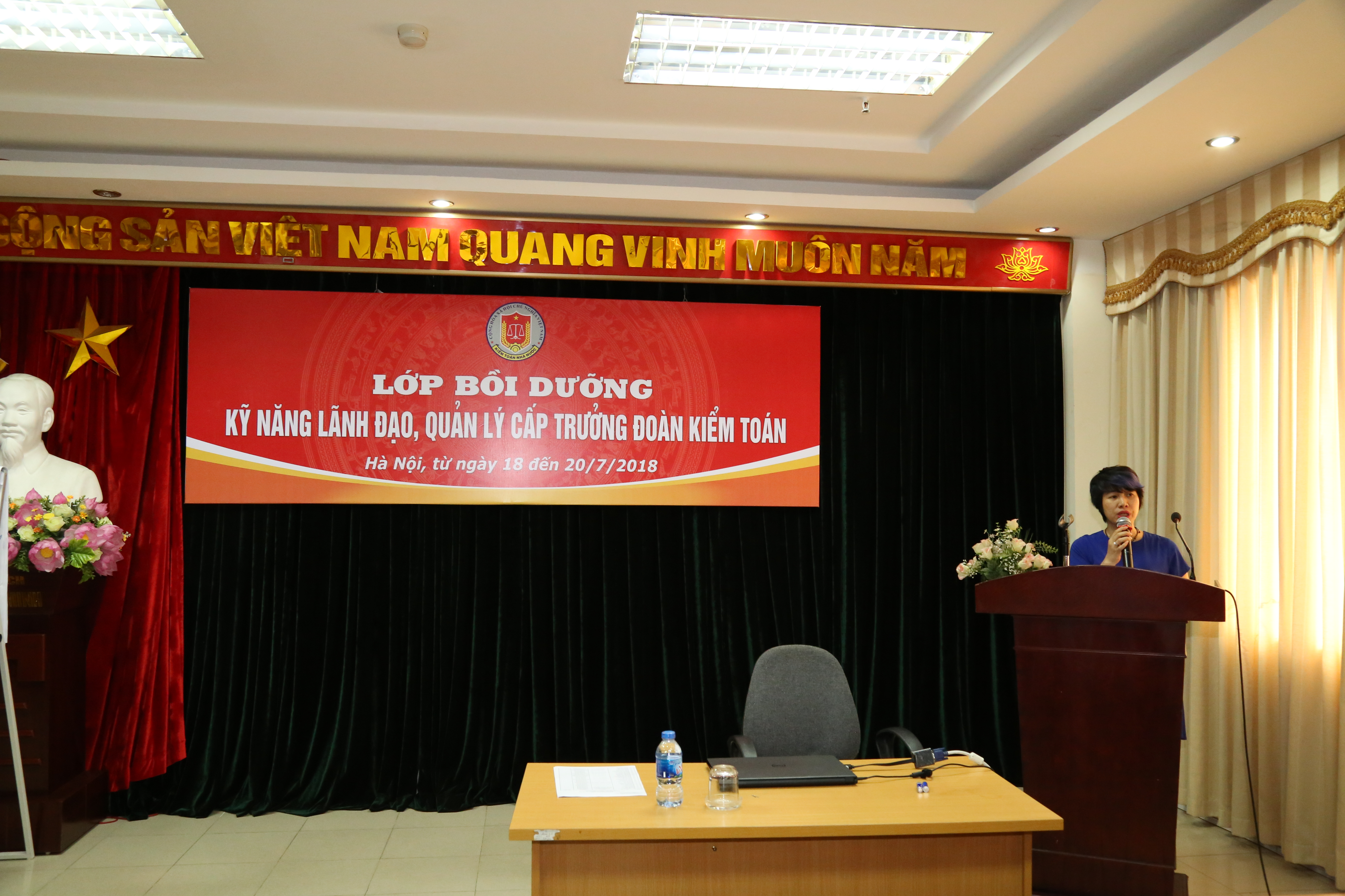(khoahockiemtoan.vn) - Sáng ngày 18/7/2018, tại Trụ sở KTNN, 111 Trần Duy Hưng, Cầu Giấy, Hà Nội, Trường ĐT&BD nghiệp vụ Kiểm toán tổ chức khai giảng Lớp đào tạo, bồi dưỡng kỹ năng lãnh đạo, quản lý của Trường đoàn kiểm toán. Đến dự buổi Lễ khai giảng có bà Lăng Trịnh Mai Hương - Phó Giám đốc Trường, cùng toàn thể học viên theo quyết định.