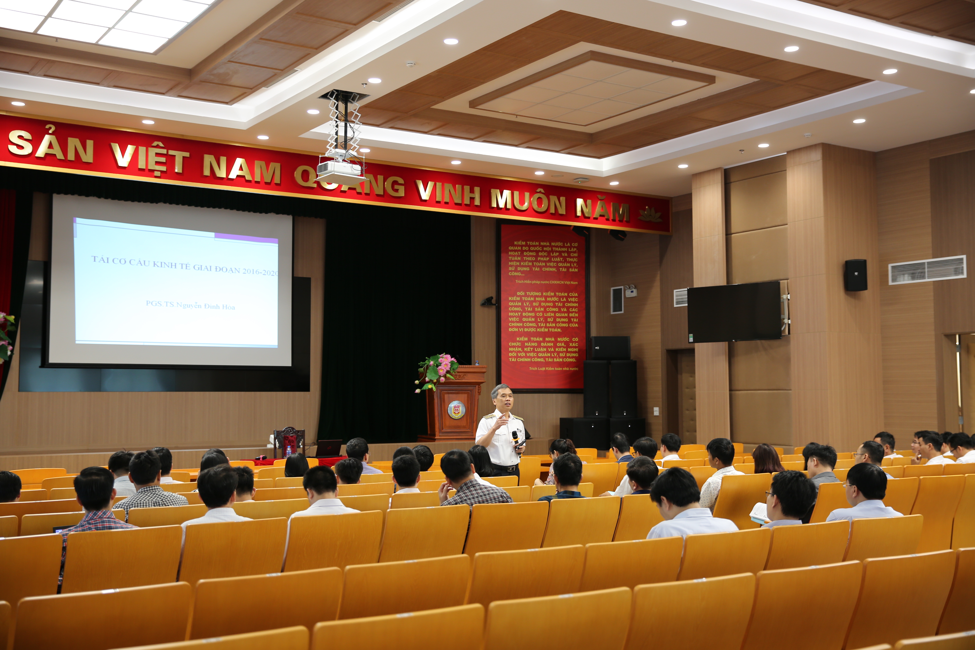 Phát biểu tại buổi Lễ khai giảng Lớp học, PGS. TS. Nguyễn Đình Hòa, Quyền Giám đốc Trường Đào tạo và Bồi dưỡng nghiệp vụ kiểm toán nhấn mạnh: việc tổ chức lớp học có ý nghĩa quan trọng, nhằm nâng cao chất lượng nguồn nhân lực phục vụ hoạt động kiểm toán của KTNN.
