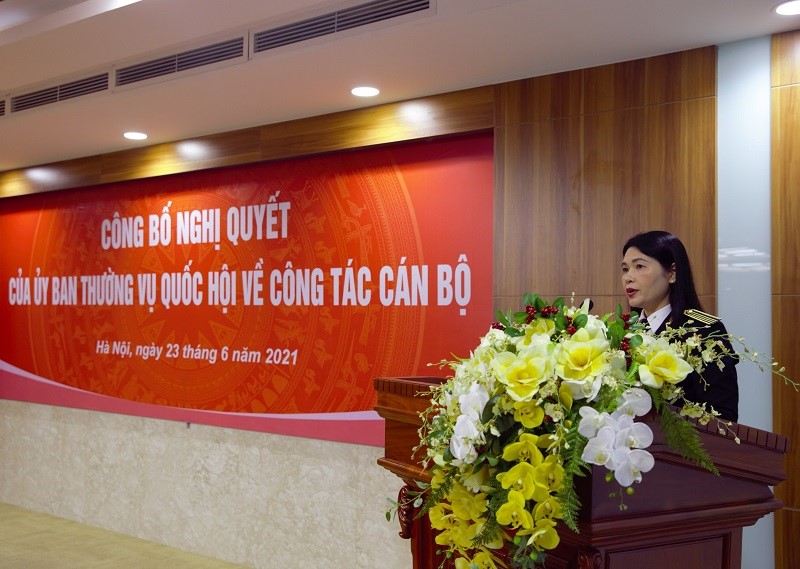 Tại buổi Lễ, Ủy viên BCH Trung ương Đảng, Trưởng Ban Công tác đại biểu Quốc hội Nguyễn Thị Thanh đã công bố Nghị quyết 1240/NQ-UBTVQH về việc nghỉ hưu để hưởng chế độ bảo hiểm xã hội đối với ông Nguyễn Quang Thành, Ủy viên Ban cán sự Đảng, Phó Tổng Kiểm toán nhà nước; Nghị quyết 1259/NQ-UBTVQH về việc phê chuẩn Phó Tổng Kiểm toán nhà nước đối với bà Hà Thị Mỹ Dung, Ủy viên Ban cán sự, Vụ trưởng Vụ Tổ chức cán bộ.