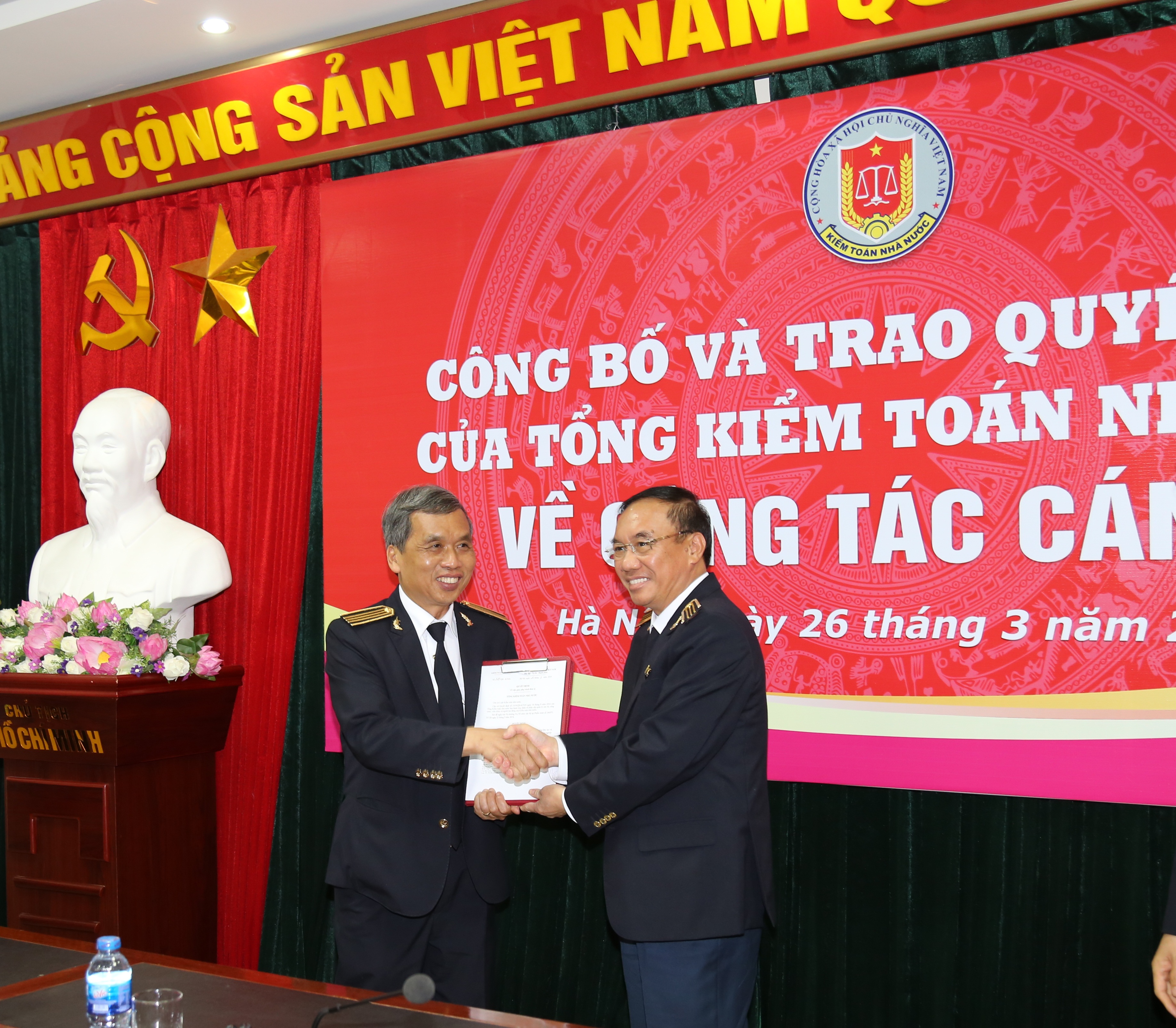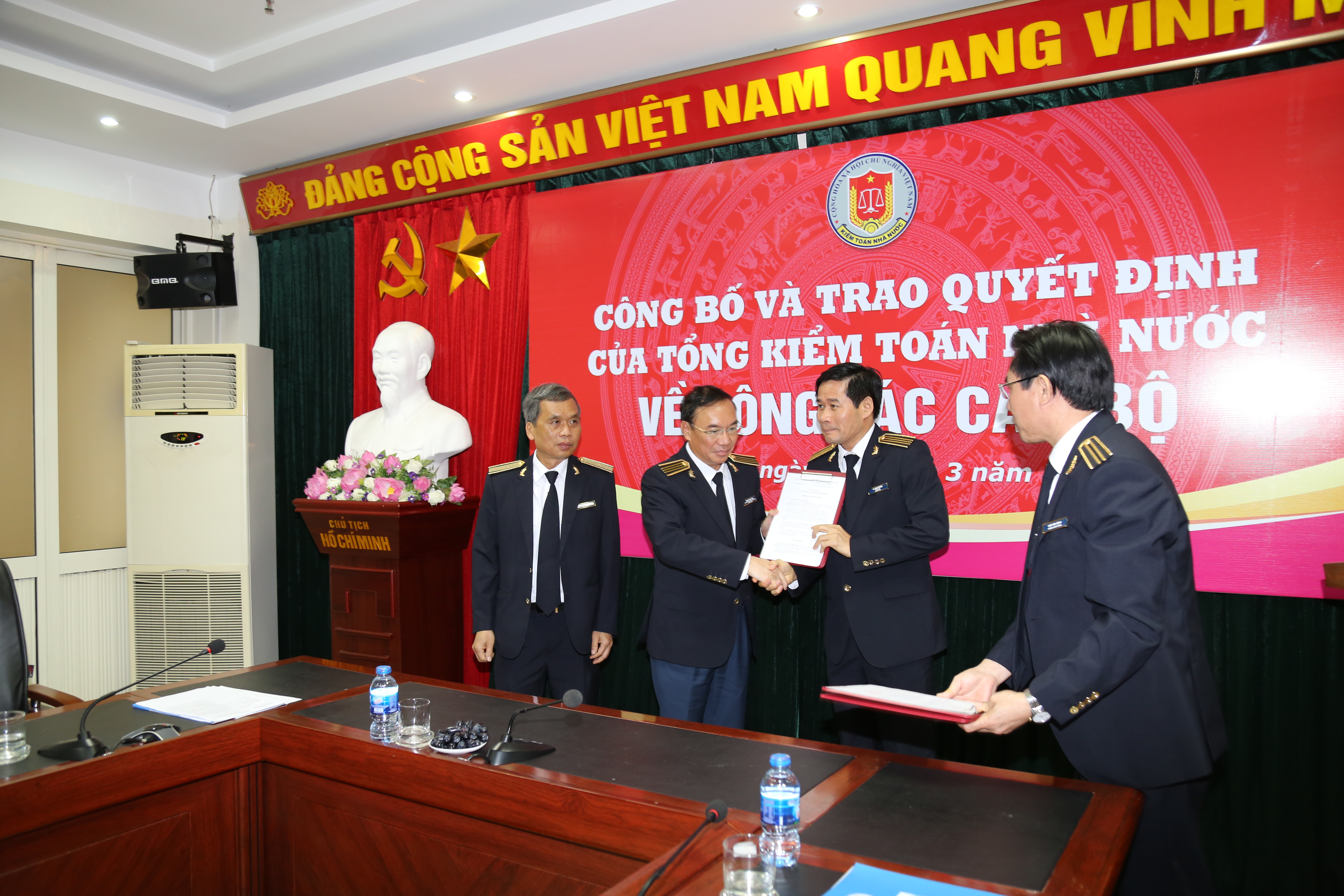 KIỂM TOÁN NHÀ NƯỚC ĐÃ TỔ CHỨC CÔNG BỐ VÀ TRAO QUYẾT ĐỊNH CỦA TỔNG KTNN VỀ CÔNG TÁC CÁN BỘ CHO TS. LÊ ĐÌNH THĂNG VÀ PGS.TS NGUYỄN ĐÌNH HÒA