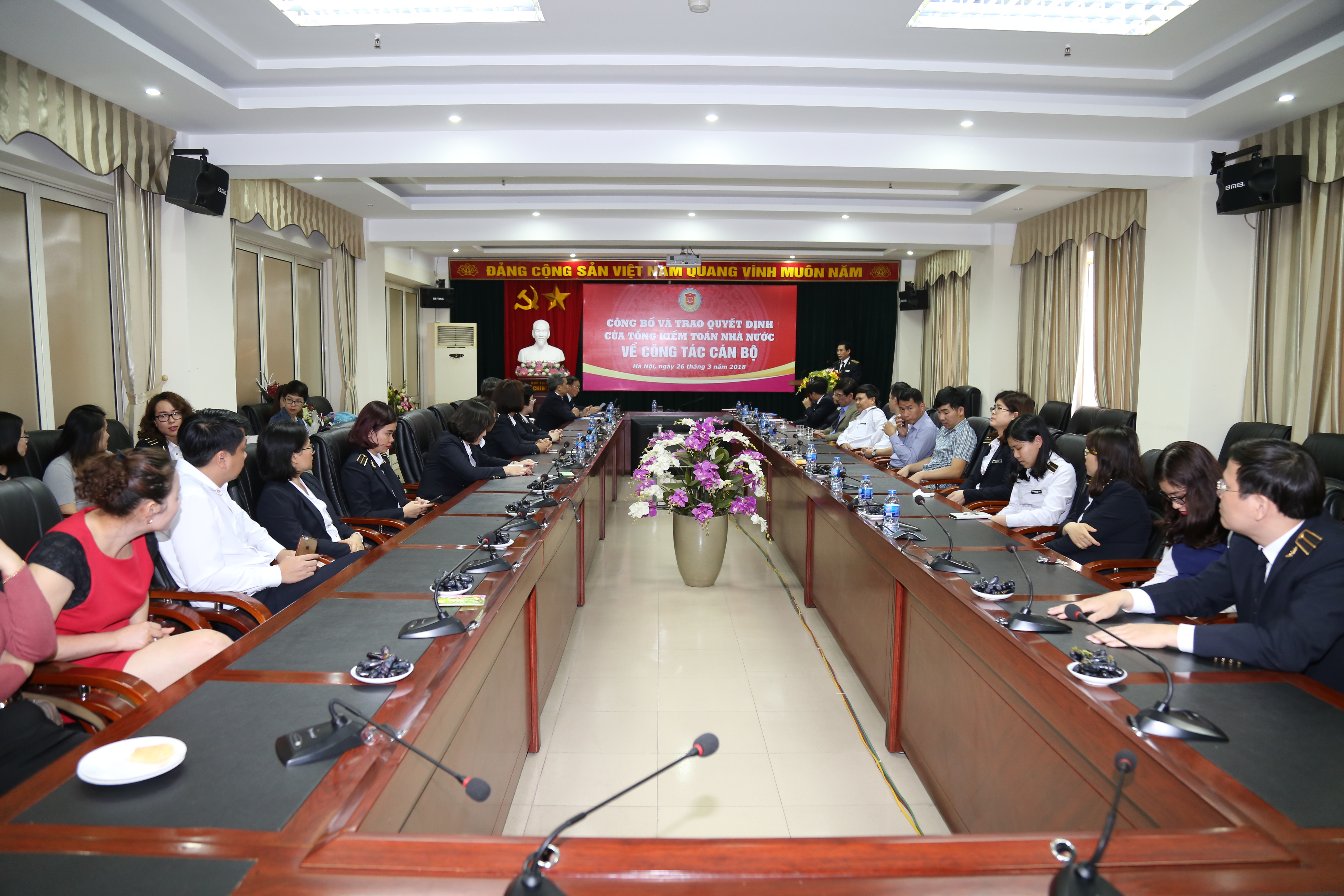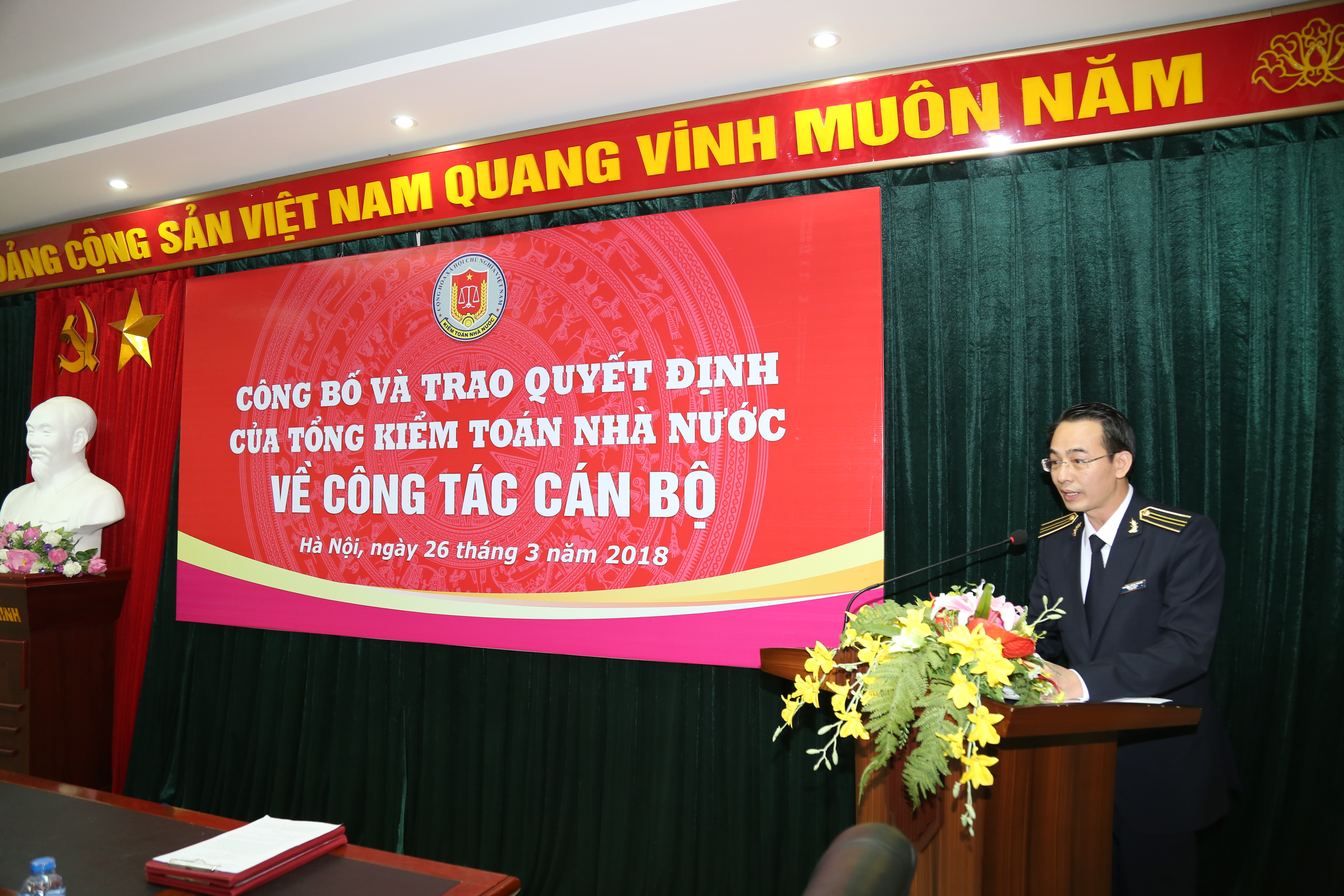 Tại buổi Lễ, ông Nguyễn Lương Thuyết - Phó Vụ trưởng, Vụ Tổ chức - Cán bộ đã đọc các Quyết định của Tổng KTNN về việc bổ nhiệm và Quyết định giao phụ trách hai đơn vị đối với 02 đồng chí Lãnh đạo Trường.