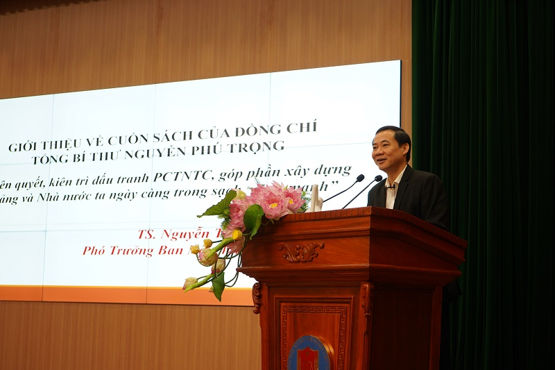 Phó trưởng Ban Nội chính Trung ương chia sẻ: Cuốn sách đã hệ thống hóa sự chỉ đạo của Tổng Bí thư Nguyễn Phú Trọng trên cương vị người đứng đầu Đảng ta và là Trưởng ban Chỉ đạo Trung ương về PCTNTC; thể hiện tư tưởng xuyên suốt, nhất quán của Đảng ta về công tác PCTNTC, xây dựng, chỉnh đốn Đảng, rèn luyện đạo đức, lối sống của cán bộ, đảng viên, để cán bộ, đảng viên, nhân dân hiểu rõ, quán triệt sâu rộng và thực hiện có hiệu quả công tác này.
