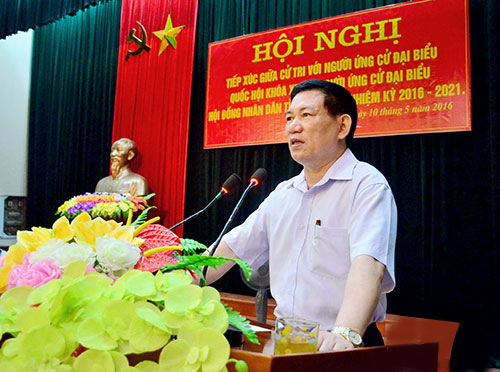 Nằm trong kế hoạch tiếp xúc cử tri vận động bầu cử đại biểu Quốc hội khóa XIV và HĐND các cấp nhiệm kỳ 2016 – 2021, sáng 10/5, Tổng Kiểm toán nhà nước Hồ Đức Phớc đã có buổi tiếp xúc cử tri tại Huyện ủy Nam Đàn, tỉnh Nghệ An.