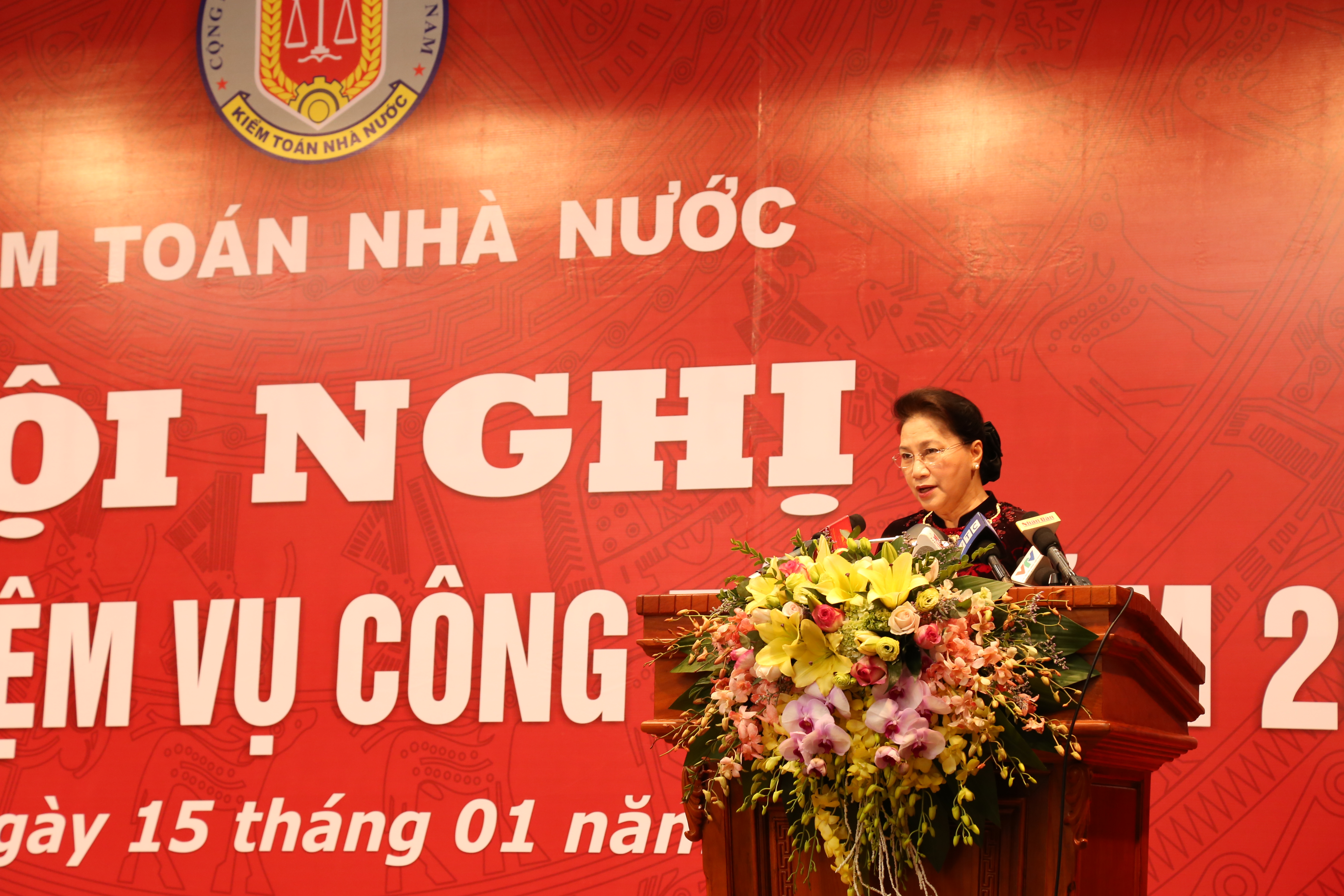 Phát biểu chỉ đạo Hội nghị, Chủ tịch Quốc hội Nguyễn Thị Kim Ngân đánh giá cao và biểu dương những kết quả, thành tích của KTNN đã đạt được trong năm 2017. “Với những kết quả đạt được, KTNN đã ngày càng tạo được niềm tin với Đảng, Nhà nước, Quốc hội, Chính phủ và Nhân dân. KTNN đã thể hiện ngày càng rõ hơn vai trò của mình, giúp cho Quốc hội, Chính phủ nắm được tình hình kịp thời, sát thực tế để tăng cường công tác chỉ đạo, quản lý, điều hành trong hoạt động lập pháp và hành pháp”. Chủ tịch Quốc hội cũng cơ bản thống nhất với các nhận định về kết quả, thành tích, cũng như khó khăn, hạn chế của KTNN đã nêu trong Báo cáo. Trong triển khai nhiệm vụ công tác năm 2018, Chủ tịch Quốc hội yêu cầu KTNN quan tâm đến một số nội dung trọng tâm: