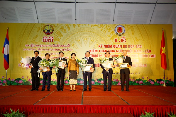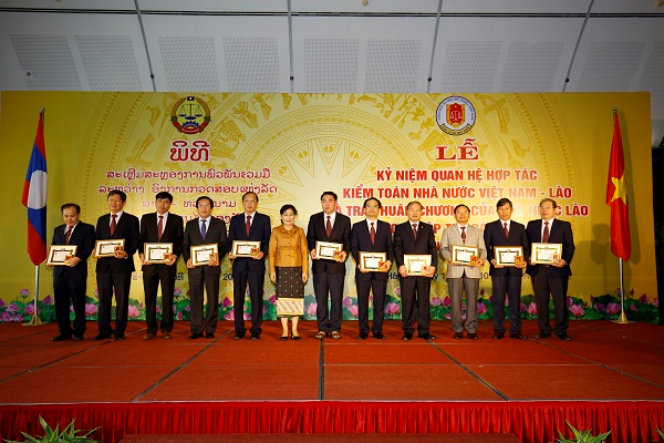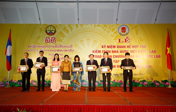 Ghi nhận những thành tích đóng góp của KTNN Việt Nam trong quá trình hợp tác với KTNN Lào nhân kỷ niệm 55 năm thiết lập quan hệ ngoại gia giữa hai nước,Chủ tich nước Cộng hòa dân chủ nhân dân lào đã quyết định tặng thướng Huân chương hạng nhì cho 1 tập thể và 4 cán nhân; Huân chương hạng ba cho 5 cá nhân và 7 tập thể, Huy chương hữu nghi cho 32 cá nhân đã có thành tích và vun đắp mối quan hệ hữu nghị truyền thống, tình đoàn kết đặc biệt, hợp tác toàn diện giữa hai Đảng hai Nhà nước và nhân dân hai nước Lào - Viêt Nam.