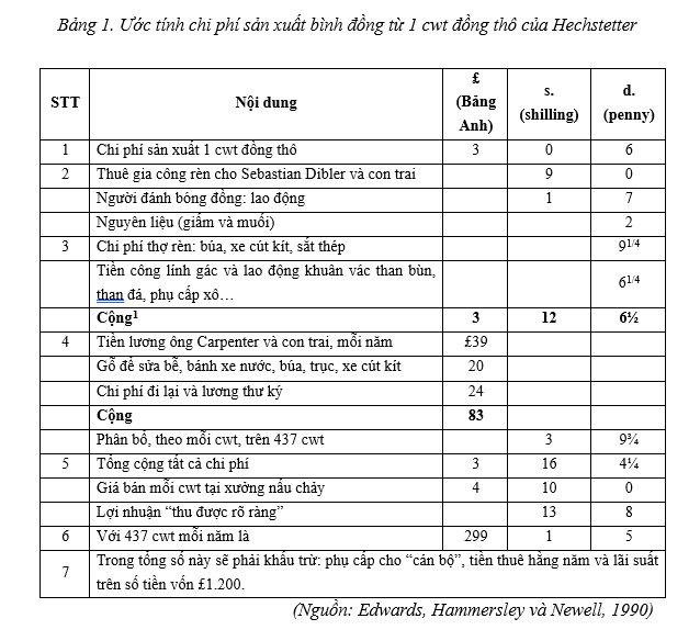 Một minh chứng tiêu biểu có thể thấy tại các nhà máy khai thác đồng và bạc ở Keswick (Anh) vào khoảng giai đoạn 1598-1615. Trong bối cảnh hoạt động kinh doanh gặp nhiều khó khăn và lợi nhuận thấp, các nhà quản lý tại đây đã sớm nhận thức được tầm quan trọng của việc theo dõi và phân tích dữ liệu chi phí nhằm kiểm soát hoạt động sản xuất và duy trì sự tồn tại của doanh nghiệp. Mối quan tâm đến sản lượng, chi phí và lợi nhuận là rất rõ ràng, thúc đẩy thực hành kế toán quản trị. Tình hình kinh doanh của ngành công nghiệp Keswick lúc đó chưa mang lại lợi nhuận cao. Bạc không được khai thác với số lượng như mong đợi và do đó, công ty phải dựa vào sản xuất đồng làm nguồn thu chính. Sự kết hợp giữa chi phí khai thác và luyện kim cao ở vùng đồi núi xa xôi này cùng giá đồng thấp trong suốt thời kỳ đã khiến ngay cả vào đầu thế kỷ XVII, khi doanh nghiệp đang ở thời kỳ đỉnh cao, lợi nhuận của công ty cũng chỉ ở mức trung bình. Từ sổ ghi chép kinh doanh của một người quản lý trẻ tuổi Daniel Hechstetter, người quản lý nhà máy Keswick từ năm 1597 đến năm 1633, các nhà nghiên cứu dễ dàng tiếp cận được bộ hồ sơ kinh doanh có lẽ là chi tiết nhất đối với một doanh nghiệp công nghiệp có trụ sở tại Anh trong giai đoạn này. Những hồ sơ này đặc biệt được các nhà sử học kế toán quan tâm vì tính chi tiết của các tài khoản và vì chúng thể hiện mức độ ý thức đáng kể về chi phí của Hechstetter, người đã thực hiện các tính toán để đánh giá hiệu quả, lợi nhuận và triển vọng tương lai của doanh nghiệp. Hechstetter đã lập ra các mục chi phí có liên quan và ông nhận ra rằng việc tăng số lượng khoáng sản khai thác mỗi tuần sẽ làm giảm chi phí đơn vị; nếu tiền trợ cấp giảm hoặc công việc nhẹ nhàng hơn thì chi phí cũng sẽ giảm; tính toán chi phí cho mỗi đơn vị được đặc biệt quan tâm vì nó không giảm theo tỷ lệ thuận với mức tăng giả định về số lượng quặng đồng khai thác. Điều này ngụ ý rằng một số chi phí sẽ tăng theo mức độ hoạt động, trong khi những chi phí khác vẫn cố định. Hechstetter đã đưa ra các ước tính chi phí, ước tính lợi nhuận, làm cơ sở để quyết định có nên đầu tư vào một hoạt động cụ thể hay không hoặc làm tiêu chuẩn để đo lường hiệu suất thực tế sau này.
