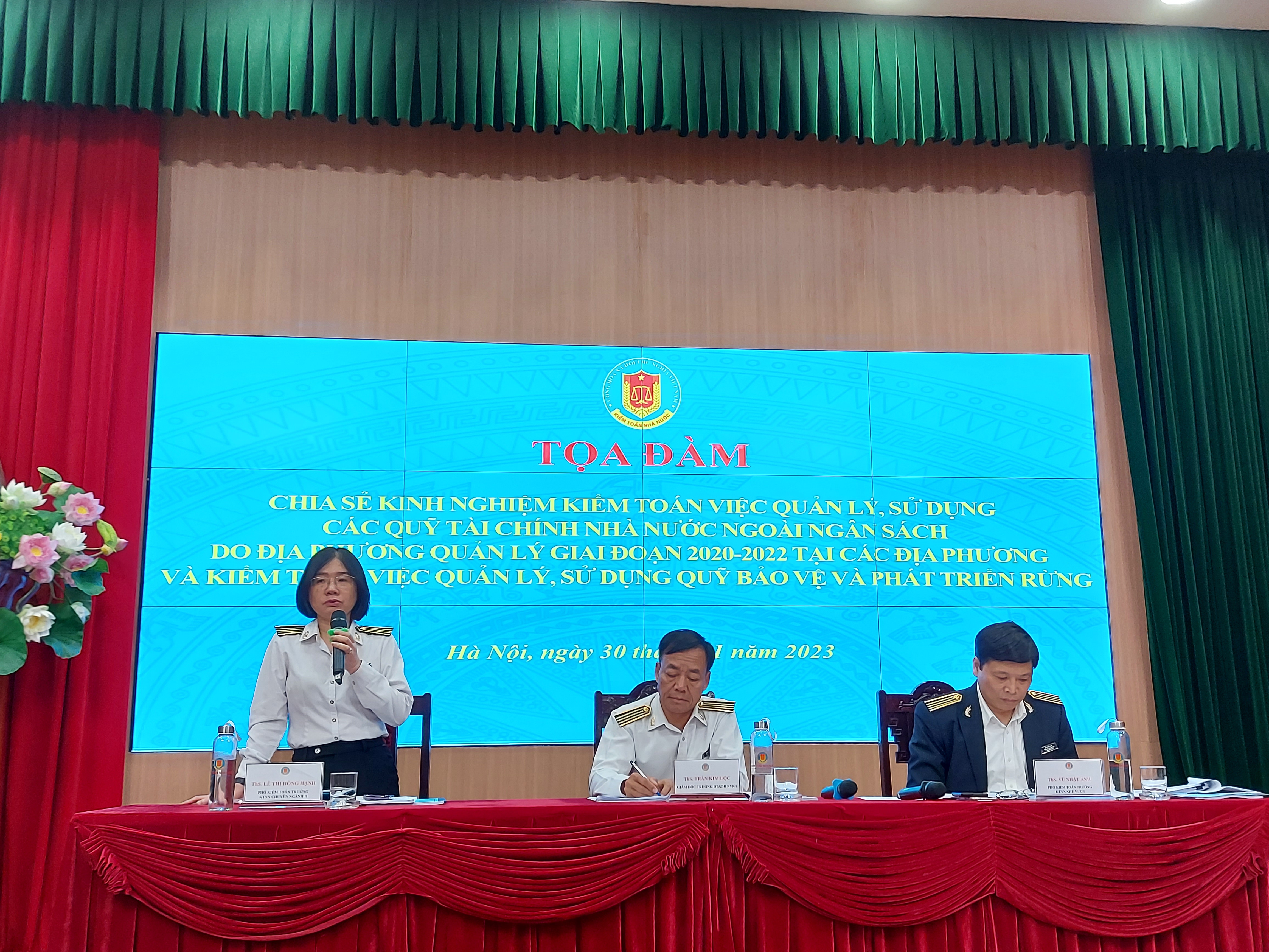 Thông qua tọa đàm, đã tổng kết, chia sẻ kinh nghiệm về các phát hiện kiểm toán chủ yếu trong kiểm toán việc quản lý, sử dụng các Quỹ Tài chính nhà nước ngoài ngân sách do địa phương quản lý giai đoạn 202- 2022 tại các địa phương và Quỹ Bảo vệ và Phát triển rừng trong thời gian qua, như: (1) Những tồn tại hạn chế trong việc chấp hành chế độ chính sách của các Quỹ Tài chính nhà nước ngoài ngân sách, Quỹ Bảo vệ và Phát triển rừng được phát hiện thông qua công tác kiểm toán và một số giải pháp khắc phục; (2) Một số đánh giá về tính hiệu lực, hiệu quả trong việc quản lý, sử dụng các Quỹ Tài chính nhà nước ngoài ngân sách do địa phương quản lý giai đoạn 2020-2022; (3) Một số bất cập về cơ chế chính sách trong quá trình thực hiện ảnh hưởng đến hiệu quả hoạt quả hoạt động của các quỹ; (4) Hội thảo đã nêu một số thuận lợi, khó khăn trong thực hiện kiểm soát chất lượng và một số giải pháp hoàn thiện công tác tổ chức kiểm soát các cuộc kiểm toán Chuyên đề, cũng như một số tồn tại, hạn chế trong thực hiện các cuộc kiểm toán Chuyên đề công tác quản lý nhà nước về Quỹ Tài chính nhà nước ngoài ngân sách do địa phương quản lý giai đoạn 2020-2022; một số giải pháp nâng cao chất lượng kiểm toán qua kết quả kiểm toán quản lý và sử dụng Quỹ Bảo vệ và Phát triển rừng; (5) Bên cạnh đó Tọa đàm cũng đặt ra một số vấn đề trong tổ chức kiểm toán toàn ngành đối với các cuộc kiểm toán chuyên đề, một số giải pháp hoàn thiện.