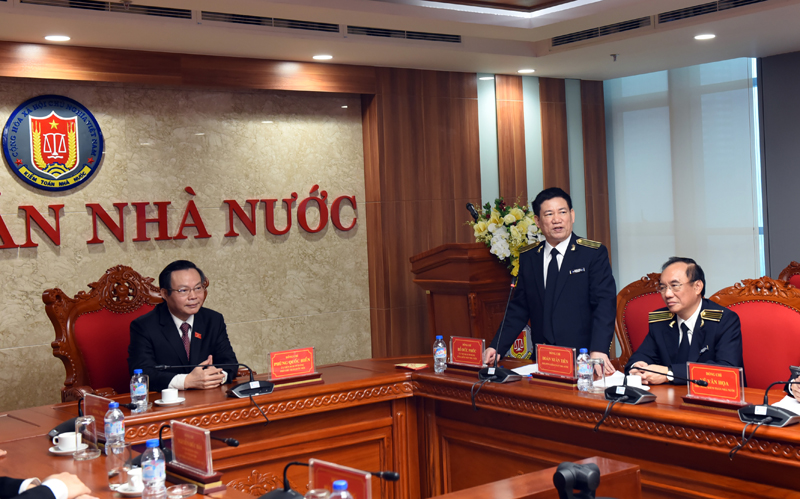 Phát biểu tại buổi làm việc, Phó Chủ tịch Quốc hội Phùng Quốc Hiển biểu dương những thành tích mà KTNN đã đạt được trong năm 2017. “Quốc hội đánh giá cao hoạt động của KTNN trong năm vừa qua. KTNN trở thành công cụ quan trọng đảm bảo cho hoạt động tài chính quốc gia ngày càng minh bạch, hiệu quả. KTNN đã hoàn thành 100% các cuộc kiểm toán với kết quả xử lý tài chính trên 43.000 tỷ đồng. Quan trọng hơn là chất lượng hoạt động kiểm toán được nâng một tầm mới” – Phó Chủ tịch Quốc hội nhấn mạnh.