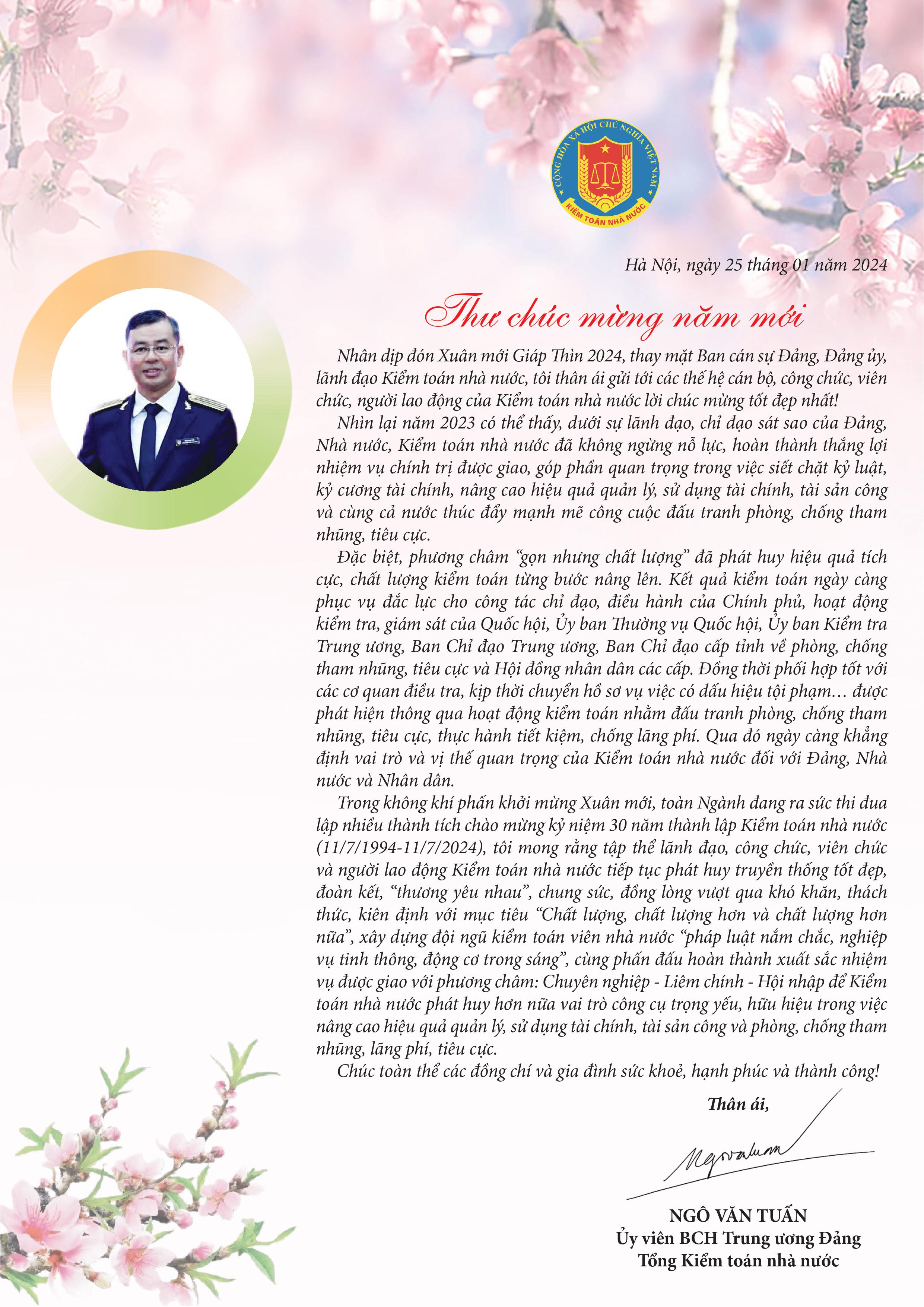 THƯ CHÚC MỪNG NĂM MỚI CỦA TỔNG KIỂM TOÁN NHÀ NƯỚC