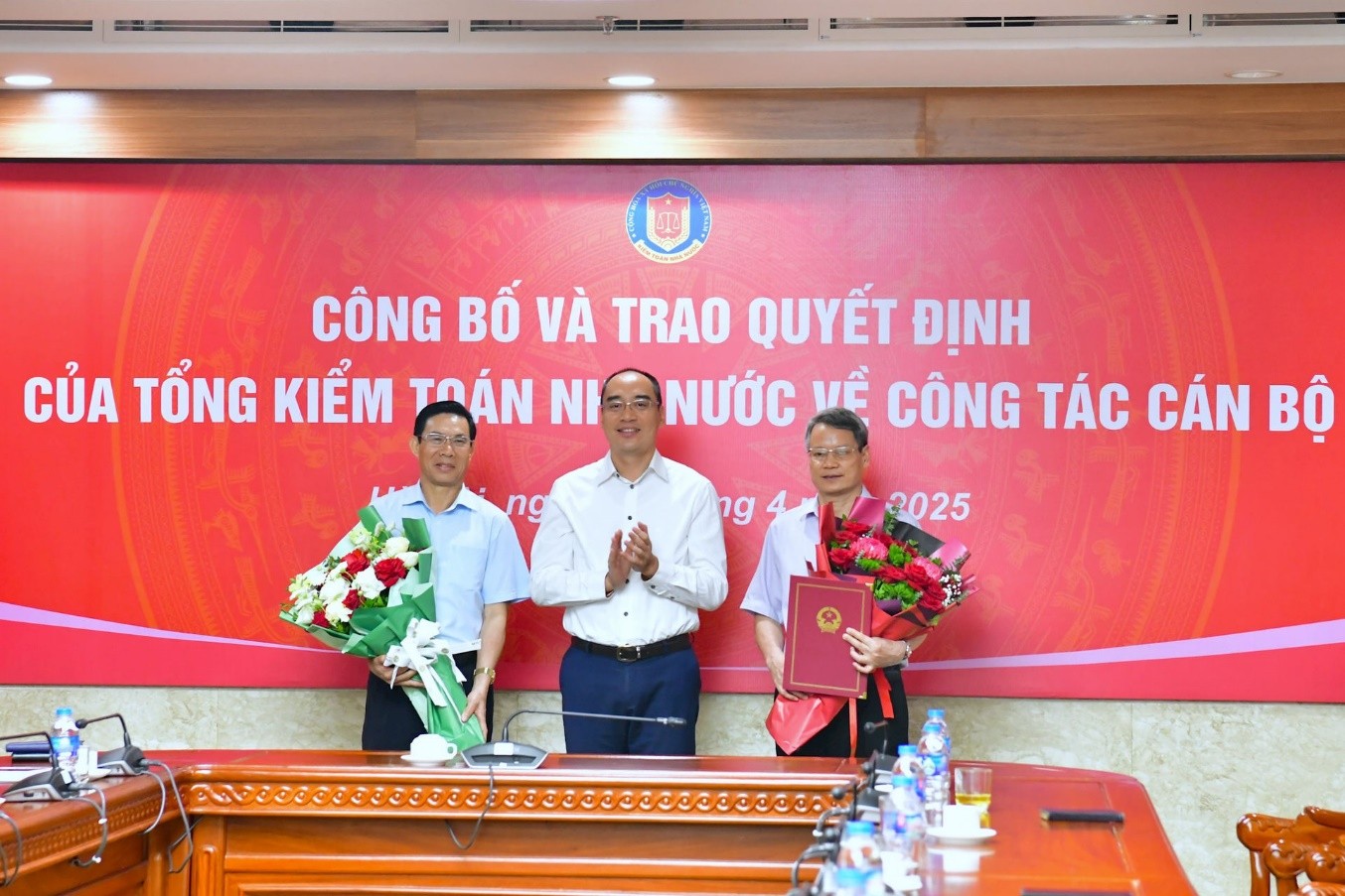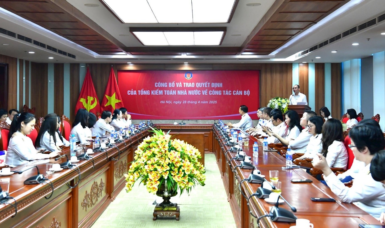 Tại buổi Lễ, Vụ Trưởng Vụ Tổ chức cán bộ Đỗ Văn Tạo đã công bố Quyết định của Tổng Kiểm toán nhà nước về thực hiện chính sách nghỉ hưu trước tuổi theo Nghị định số 178/2024/NĐ-CP, được sửa đổi, bổ sung bởi Nghị định số 67/2025/NĐ-CP của Chính phủ về chính sách, chế độ đối với cán bộ, công chức, viên chức, người lao động và lực lượng vũ trang trong thực hiện sắp xếp tổ chức bộ máy của hệ thống chính trị đối với ông Đỗ Hồng Công - Phó Giám đốc Trường Đào tạo và Bồi dưỡng nghiệp vụ kiểm toán và ông Ngô Văn Dũng - Phó Giám đốc Trường Đào tạo và Bồi dưỡng nghiệp vụ kiểm toán.