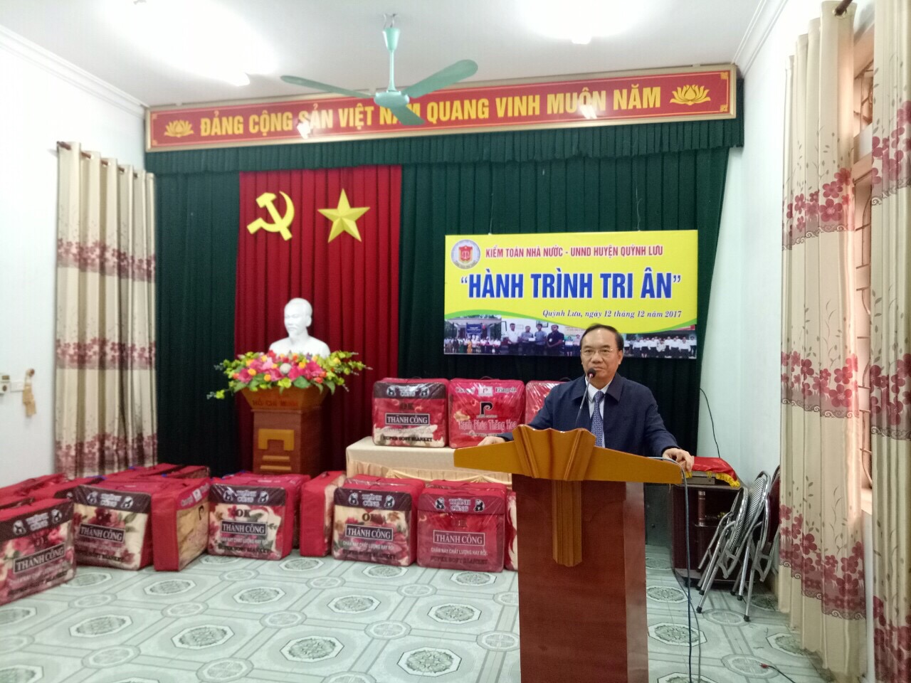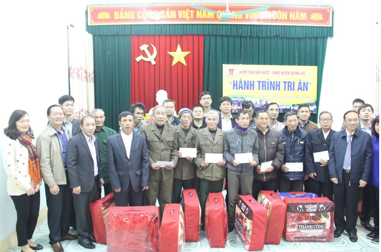(khoahockiemtoan.vn) - Chiều ngày 12/12/2017, tại UBND huyện Quỳnh Lưu,tỉnh Nghệ An Lớp Kiểm toán viên chính tháng 12/2017 của Kiểm toán nhà nước đã tổ chức Chương trình tặng quà tri ân người có công với cách mạng trên địa bàn huyện Quỳnh Lưu nhân kỷ niệm 73 năm ngày Quân đội nhân dân Việt Nam (22/12/1944-22/12/2017).