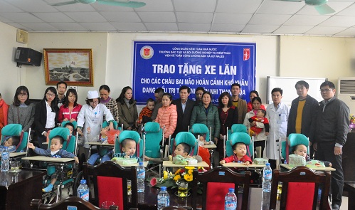 Nằm trong Chương trình về nguồn và kế hoạch hoạt động từ thiện trong năm 2015  của Công đoàn, Đoàn Thanh niên Trung tâm, và sự quan tâm, hỗ trợ một phần kinh phí của Công  Đoàn KTNN, Viện Kế toán Công chứng Vương quốc Anh và xứ Wales, tại điểm dừng chân cuối cùng ở tỉnh Thanh Hóa, Đoàn đến thăm và làm từ tiện tại Bệnh viện Nhi Thanh Hóa. Tại đây, Đoàn công tác và Lãnh đạo Trung tâm đã trao tặng 12 xe lăn cho 12 cháu bị bại não tại Khoa Thần kinh - Đông y. Ông Lê Đình Thăng, thay mặt lãnh đạo, cấp ủy Trung tâm và các đơn vị cùng phối hợp đã trao tặng xe lăn cho 12 gia đình có các cháu bị bệnh hiểm nghèo. Thay mặt lãnh đạo Bệnh viện Nhi Thanh Hóa, Thạc sỹ, Bác sỹ Lê Thị Minh Châu - Phó Giám đốc Bệnh viện đã cảm ơn sự quan tâm của Đoàn cán bộ Trung tâm KH&BDCB, Công đoàn KTNN và Viện Kế toán Công chứng Vương quốc Anh và xứ Wales đã chia sẻ yêu thương và tình cảm đến các cháu nhỏ của Bệnh viện.