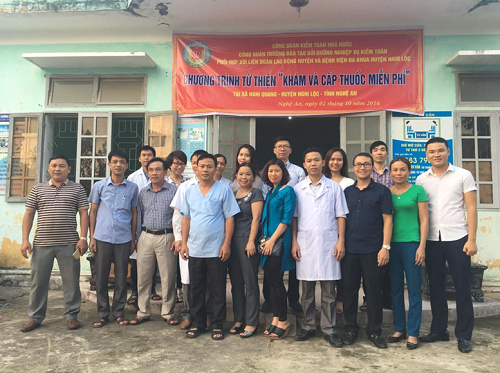 (khoahockiemtoan.vn) - Công đoàn Trường cùng với học viên lớp Tiền kiểm toán viên 3 và Tiền kiểm toán viên 4, phối hợp với Liên đoàn Lao động huyện và Bệnh viện Đa khoa huyện Nghi Lộc đã tổ chức chương trình từ thiện “Khám và cấp thuốc miễn phí” cho người già, trẻ em, gia đình chính sách và gia đình có hoàn cảnh khó khăn tại xã Nghi Quang, huyện Nghi Lộc, tỉnh Nghệ An