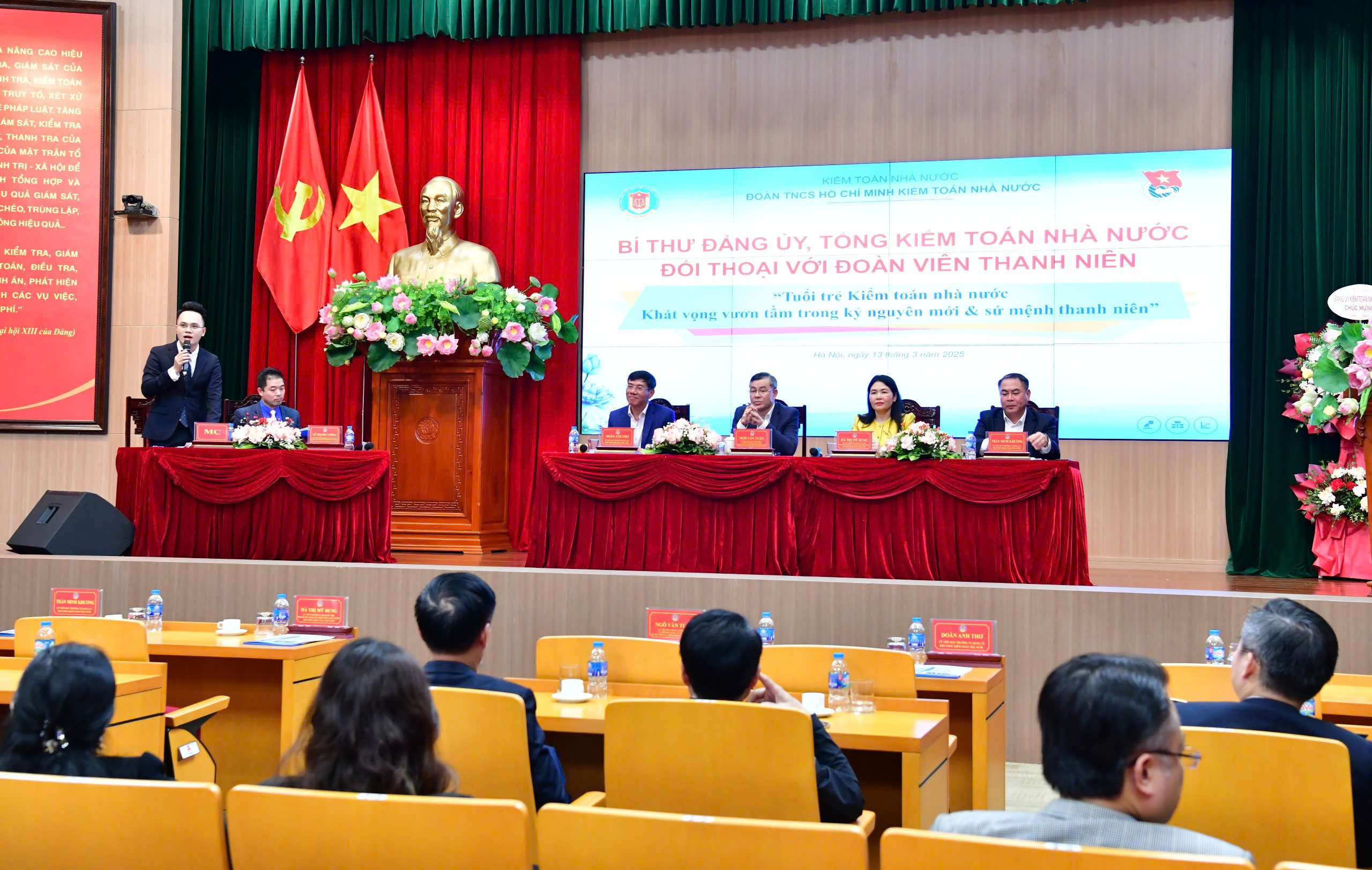 Tại Chương trình đối thoại, các đoàn viên thanh niên đã gửi đến Tổng Kiểm toán nhà nước cùng các đồng chí Lãnh đạo Ngành những câu hỏi, những vấn đề liên quan đến phát huy các giá trị “Kỷ cương, liêm chính, chuyên nghiệp, đổi mới và hội nhập” trong đội ngũ đoàn viên, thanh niên Kiểm toán nhà nước giai đoạn mới; phát huy vai trò tiên phong trong công cuộc chuyển đổi số, cống hiến trong “Kỷ nguyên vươn mình của dân tộc”; phát huy năng lực và bản lĩnh của đoàn viên thanh niên Kiểm toán nhà nước trong thực hiện nhiệm vụ chính trị của đơn vị với phương châm “Gọn nhưng chất lượng”, “An toàn và Uy tín” cũng như tâm tư, nguyện vọng, đề xuất của đảng viên trẻ, đoàn viên thanh niên đối với sự lãnh đạo của Đảng ủy, các cấp ủy Đảng và kỳ vọng của Lãnh đạo Đảng ủy Kiểm toán nhà nước đối với thế hệ trẻ, thanh niên Kiểm toán nhà nước”.